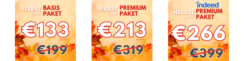 33 % Rabatt auf ausgewählte Pakete (Basis & Premium) – inklusive unseres Bestsellers, dem Premium Indeed-Paket.